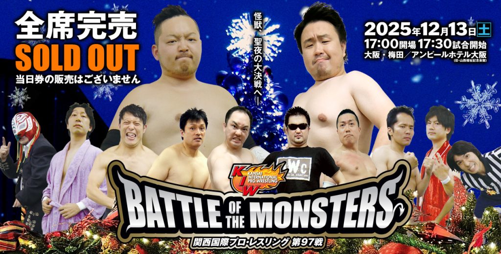 試合予定|関西国際プロ・レスリング第97戦「BATTLE OF THE MONS… 試合予定 X Facebook はてブ LINE コピー 2025.11.23 試合予定 関西国際プロ・レスリング第97戦「BATTLE OF THE MONSTERS」 前売り完売御礼!! 12/13次回大会は、おかげさまをもちまして前売り券完売となりました。厚く御礼申し上げます。また、対戦カードは後日発表いたします。
